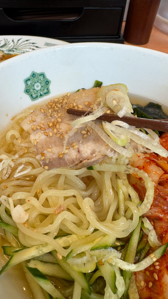 今回は夏の期間限定メニューの黒酢しょうゆ冷し麺と冷麺を初めて食べましたが、どちらも暑い時期にぴったりな清涼感で、味も美味しかったです!