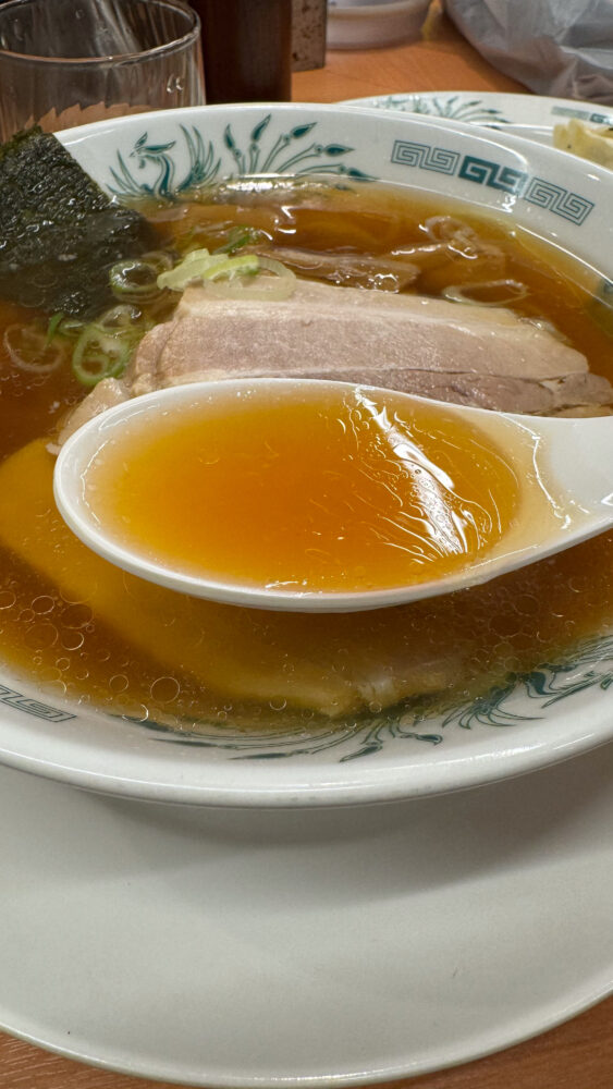 ▲スープはあっさりめの醤油。お酒を飲んでいたので、身体に染み渡ります。