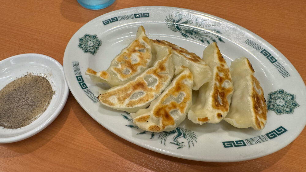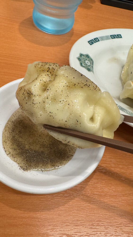 ▲酢胡椒で食べる餃子はさっぱりして美味しいですね。