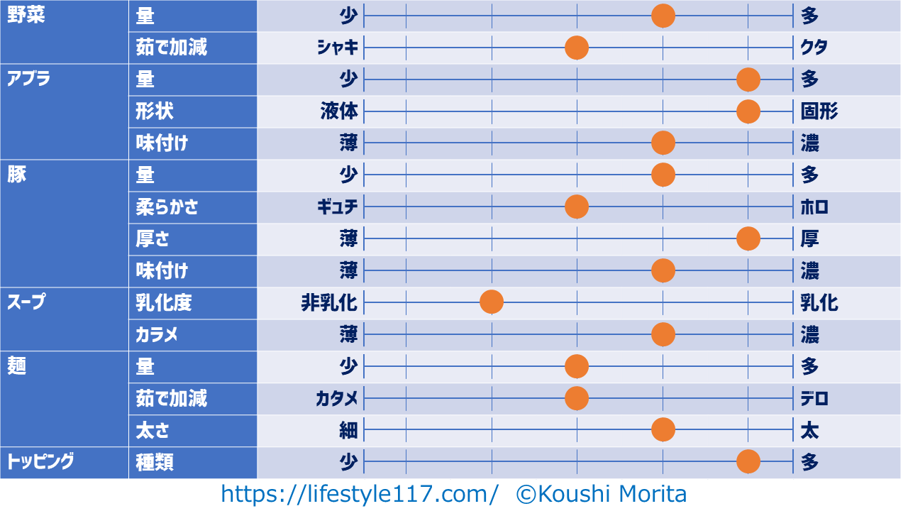 私は原則ニンニクを入れない(妻に怒られるので)ため、項目からニンニクは除外しています。