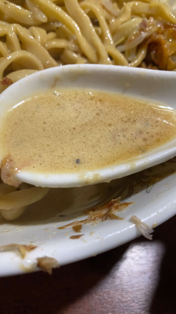 D麺の汁無しはカツオ節やフライドオニオン、マヨネーズなど、さまざまな旨味や食感も味わえて美味しかったですね!