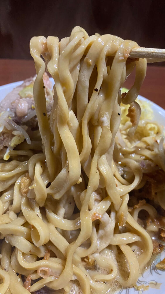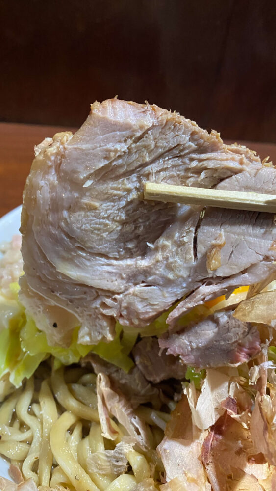 汁無しはヤサイコールがないので、野菜量も少なめだったのも大きいですね(コールすると盛りがすごいので)。