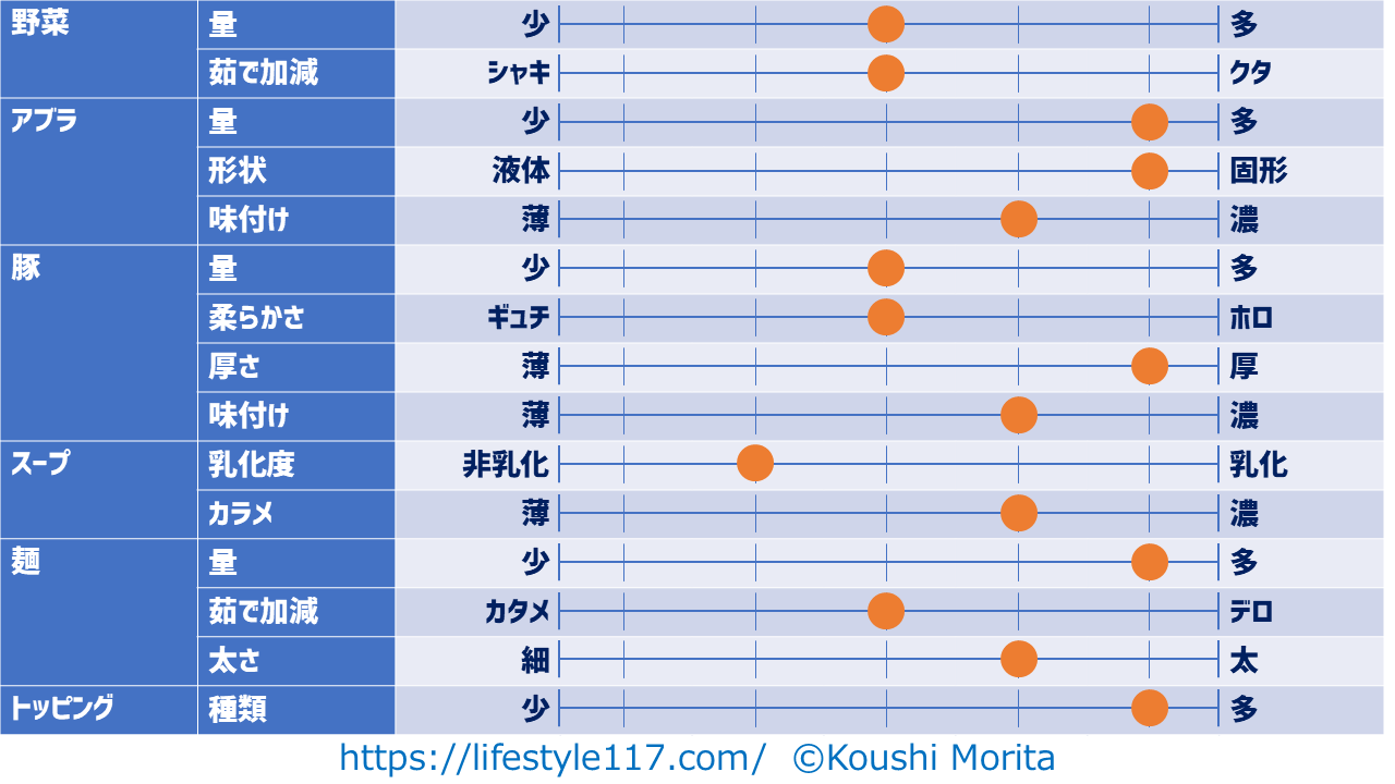 私は原則ニンニクを入れない(妻に怒られるので)ため、項目からニンニクは除外しています。