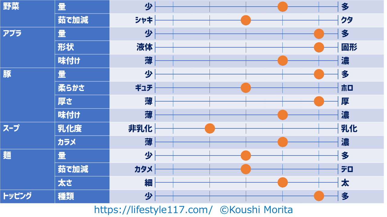 私は原則ニンニクを入れない(妻に怒られるので)ため、項目からニンニクは除外しています。
