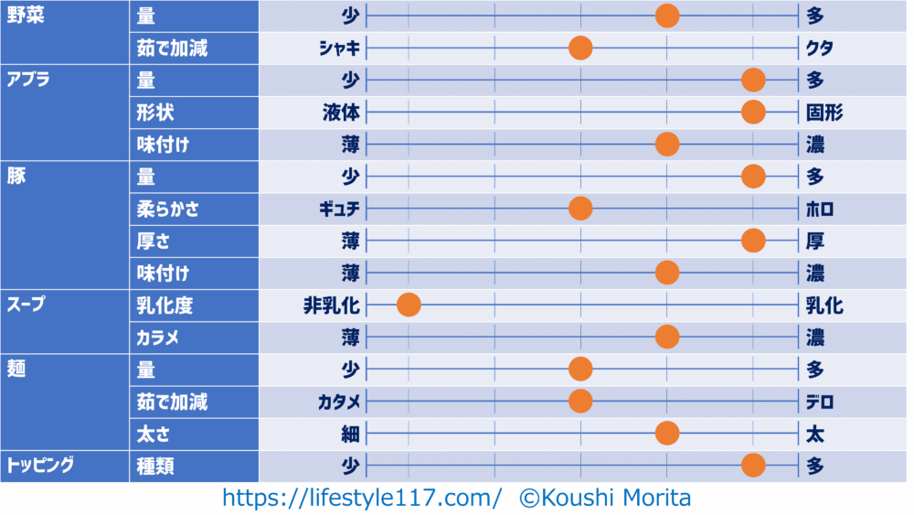 私は原則ニンニクを入れない(妻に怒られるので)ため、項目からニンニクは除外しています。