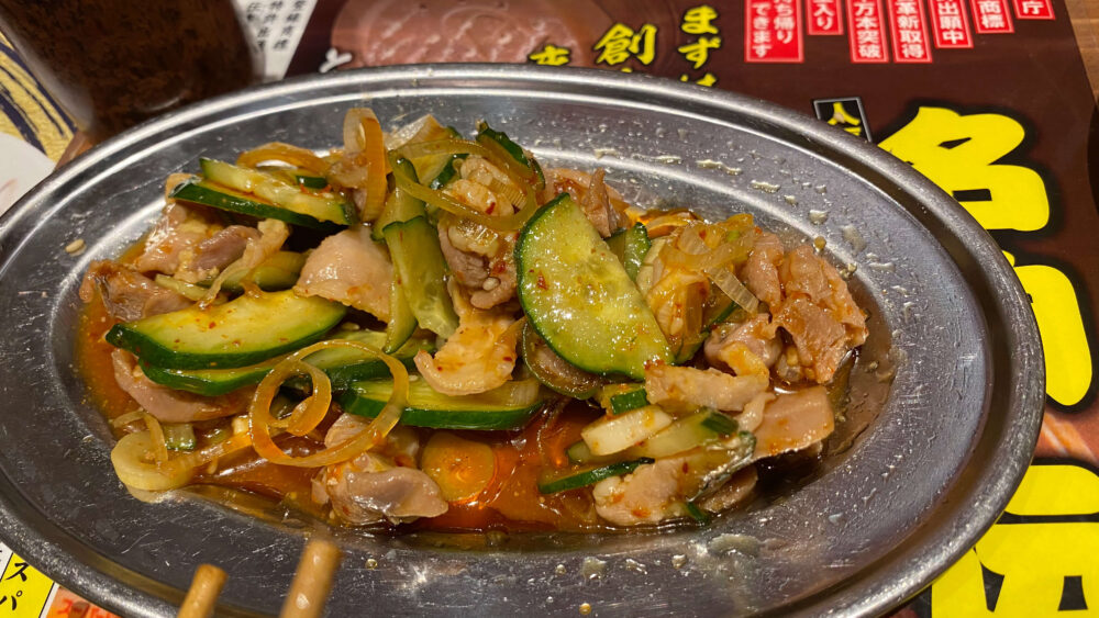 ▲四川風よだれ鶏(税込308円)。けっこうピリ辛。伝串と交互に食べるとお酒が進みます。