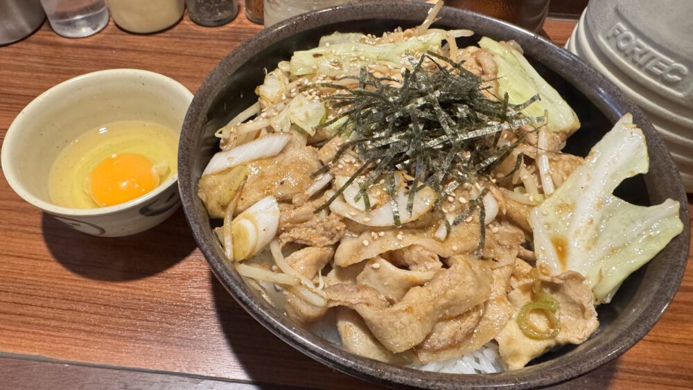 「てりやきしょうがスタミナ丼+超人(肉3倍)+ごはん大盛+生タマゴ」を実食!