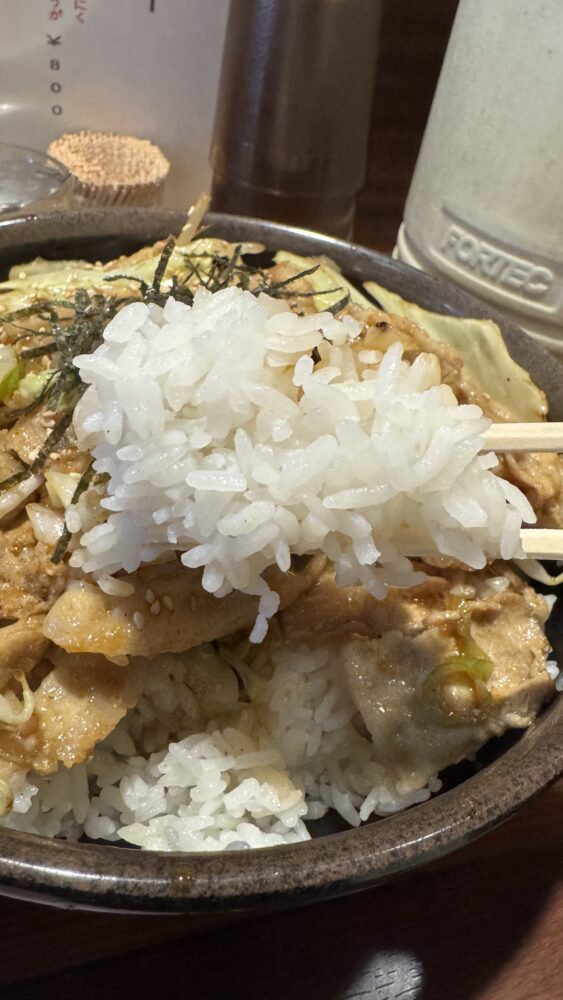 ▲たまらずライスもかきこみます。豚肉たちがライスの進む味わいで相性抜群。