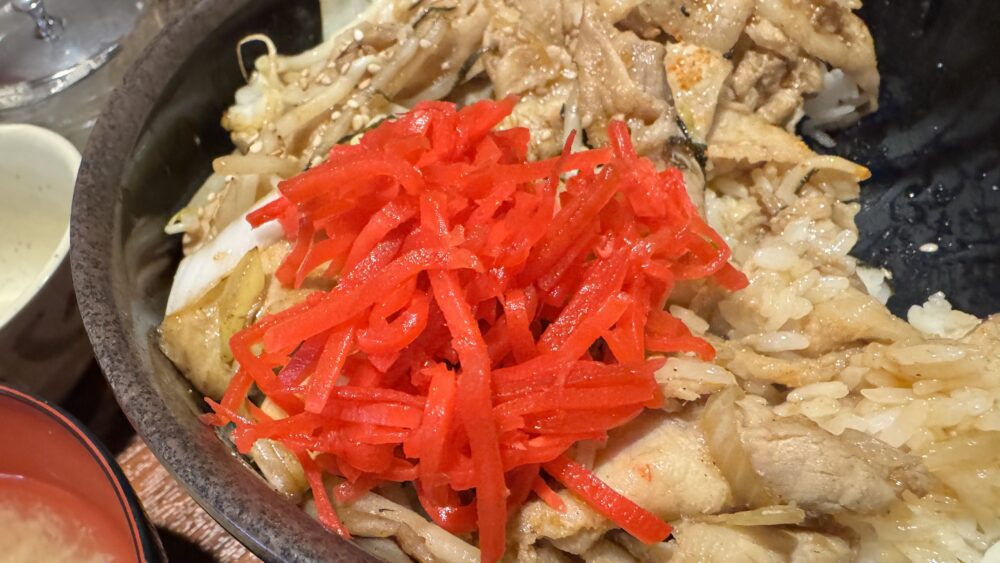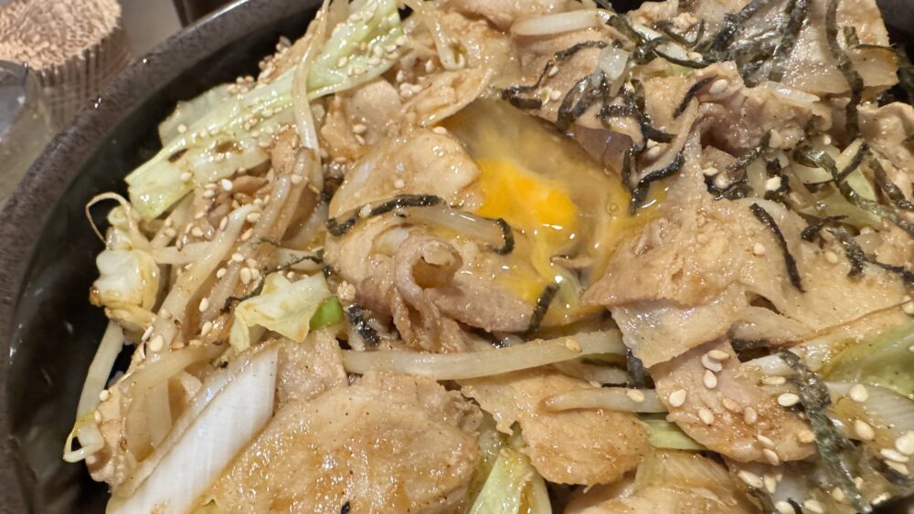 てりやきしょうがスタミナ丼が着丼!大量の豚肉にキャベツやネギなども入っていて美味しそう!