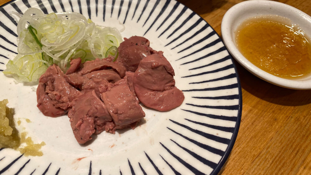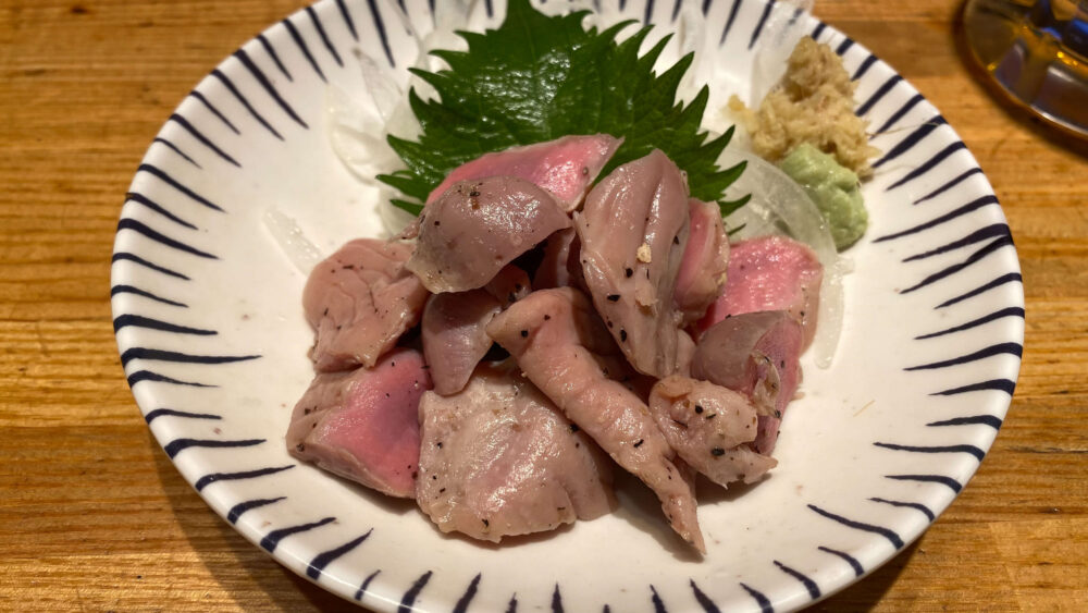 ▲砂肝刺し(税込319円)。焼き物と食感が違うのが面白い。
