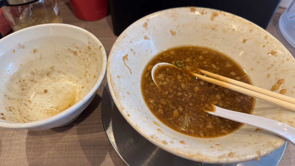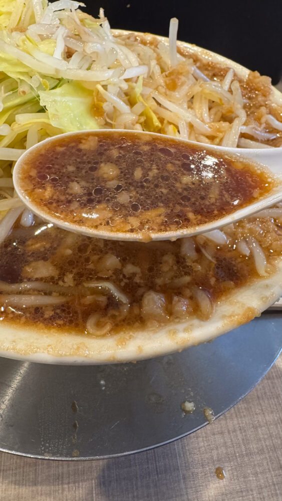▲スープは、非乳化気味で醤油感強め。背脂のコクも加わって美味しい。