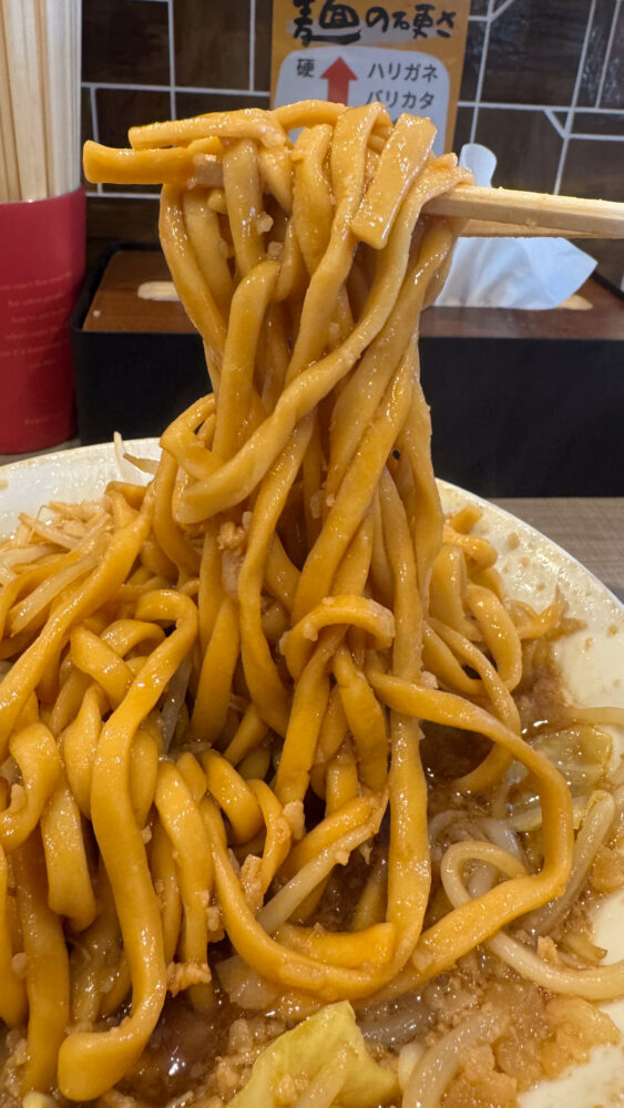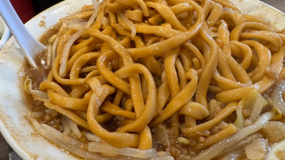 ▲麺は、けっこう太めで加水率高め。脂をまとっていてめちゃ旨。