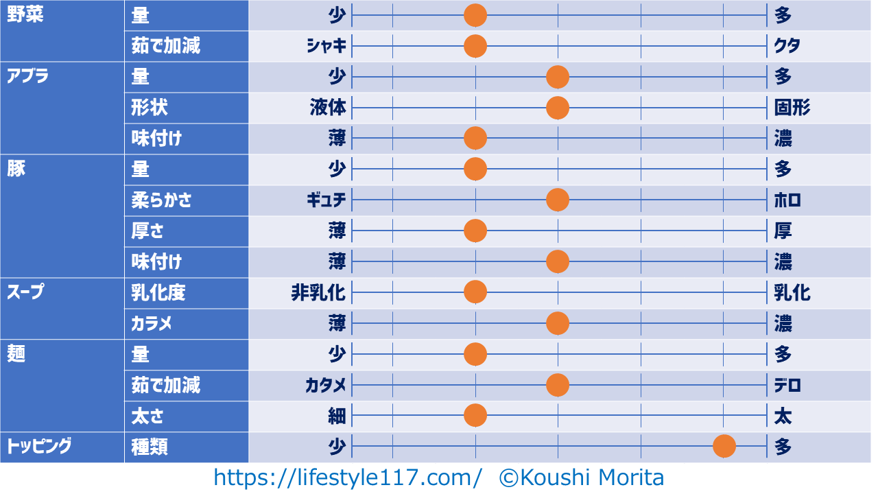 私は原則ニンニクを入れない(妻に怒られるので)ため、項目からニンニクは除外しています。