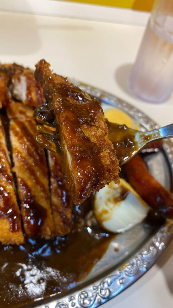 ▲金沢カレーを定義する上で必要な要素その2のカツ。同じ種類が2枚かと思ったら、チキンカツとロースカツみたい。サクサクで美味。