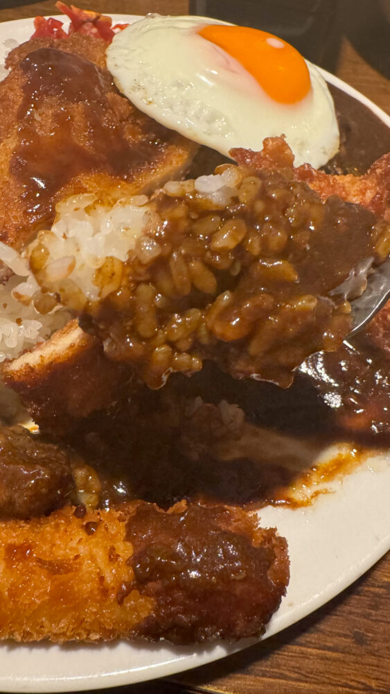 ▲カレーは粘度高めで濃厚。ご飯にもトッピングにも合いますね。
