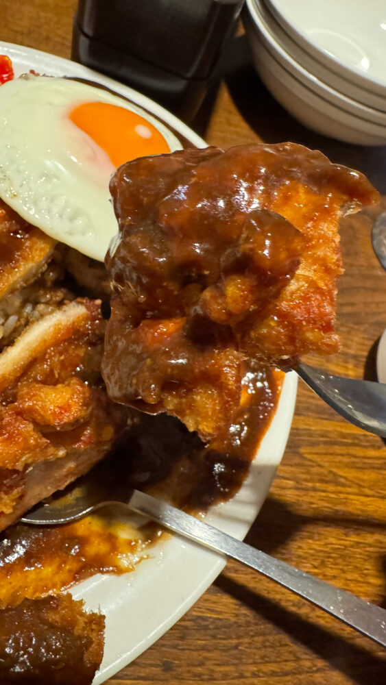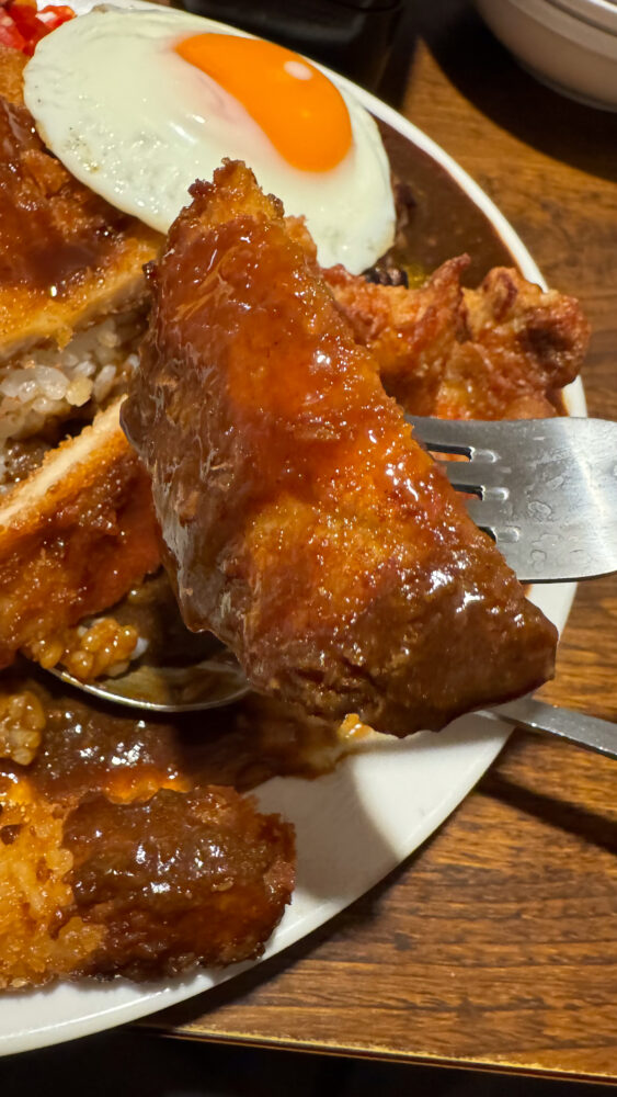 ▲唐揚げはけっこうルーがかかっていますが、ジューシーで美味しい。