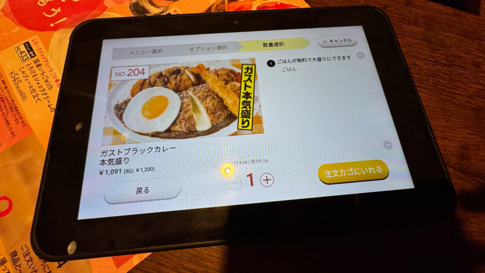 店員さんに席を案内されたら、席上のタブレットから注文していきます。