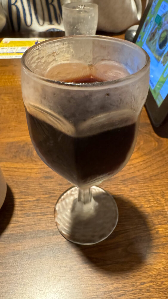 今回はガストブラックカレー本気盛り+赤ワイン+ハイボール+あんこサンデーを注文しました!
