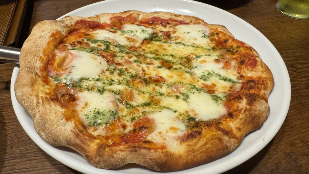 ▲続いてマルゲリータピザ。けっこう本格的で美味しい。家族とシェアするにもちょうどよいサイズ感。