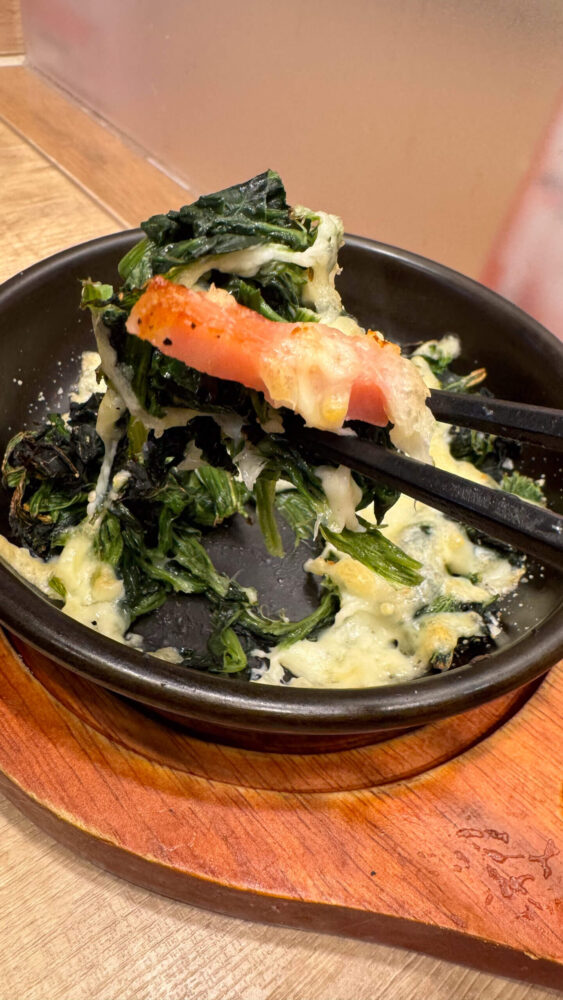 - ほうれん草とベーコンのチーズ焼き:270円 ※クーポン利用