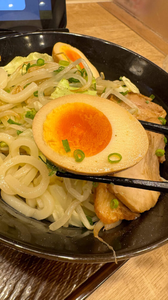 - ガス郎魚介つけ汁うどん チャーシュー煮卵付き:950円