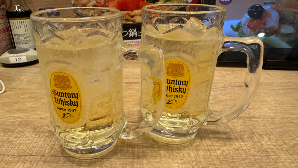 ▲角ハイボール×2。ハッピーアワー間際なので一気に2杯注文。仕事終わりのハイボールは美味しいです。