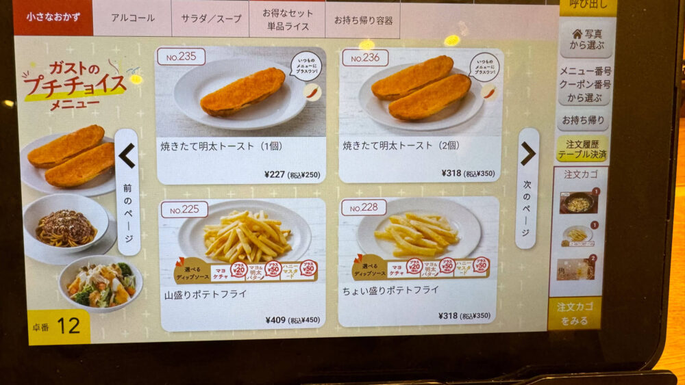 一人飲みするには、正直サイゼリヤや日高屋の方が、常時お酒が安くて、そちらを多用していましたが、ガストはがっつりごはんが出たので、その点が個人的な差別化要素ですね。