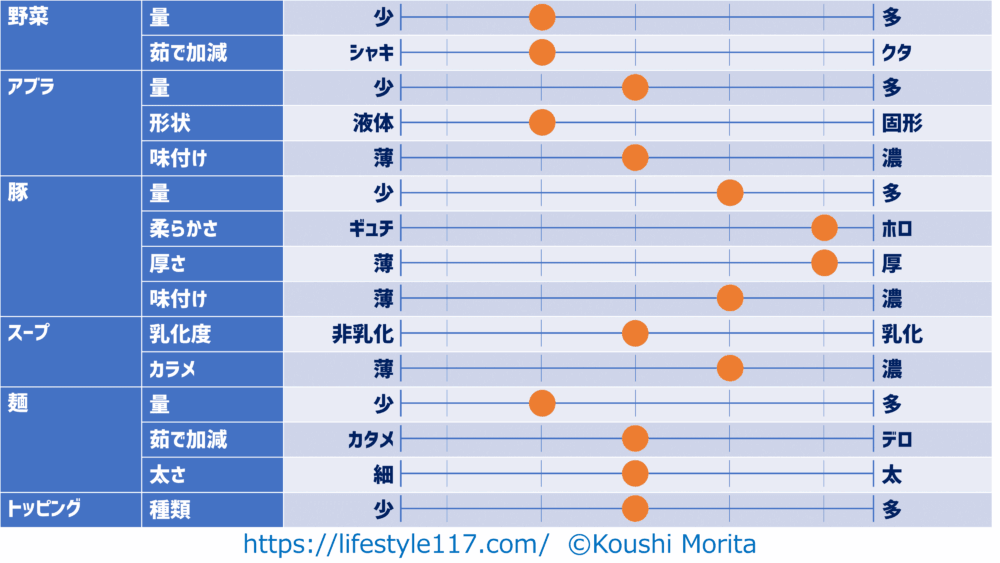 私は原則ニンニクを入れない(妻に怒られるので)ため、項目からニンニクは除外しています。