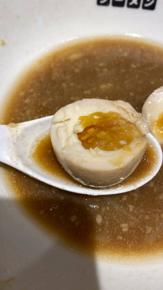 ▲デザート代わりに味玉でフィニッシュ!塩味の強いスープといっしょに食べるとより旨し。