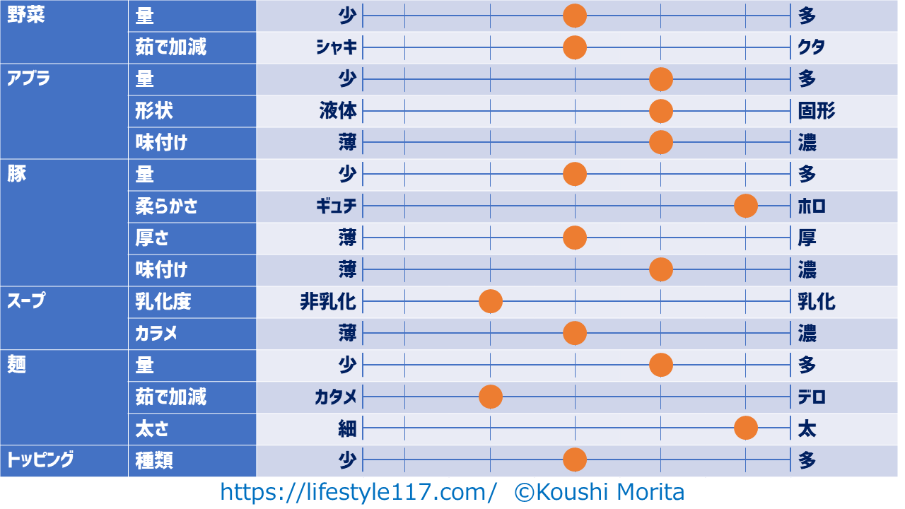 私は原則ニンニクを入れない(妻に怒られるので)ため、項目からニンニクは除外しています。