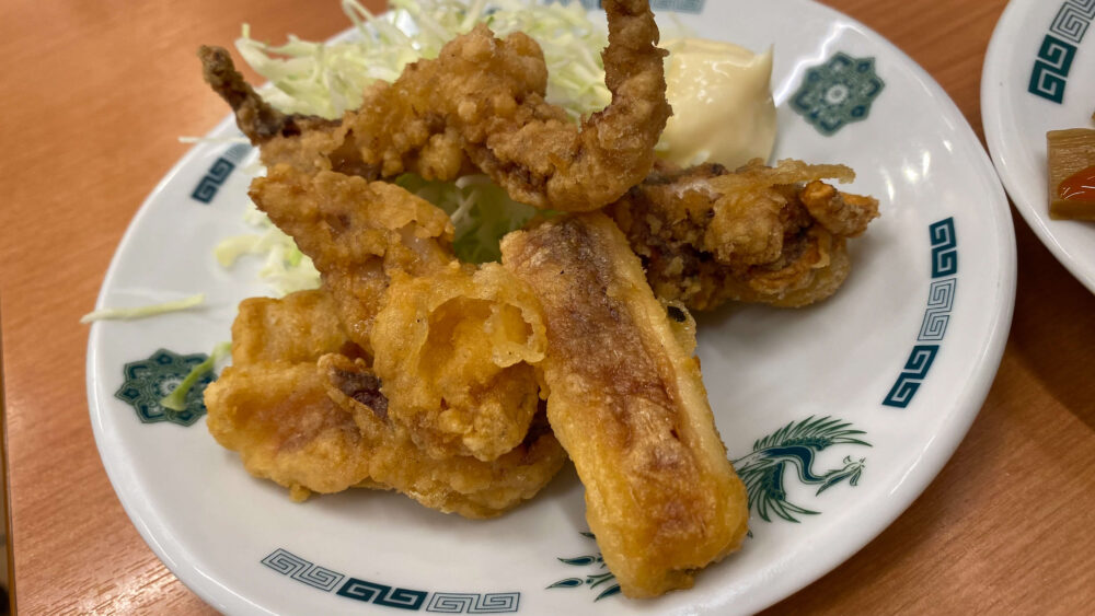 ▲イカ揚げ(税込290円)。プリっとしたイカが美味しい。添えられたマヨネーズを付けても良し。