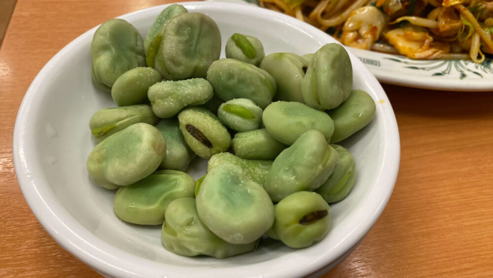 ▲そら豆(税込200円)。何気に初注文ですが、ほっくほくで塩がほどよく効いて美味しい。