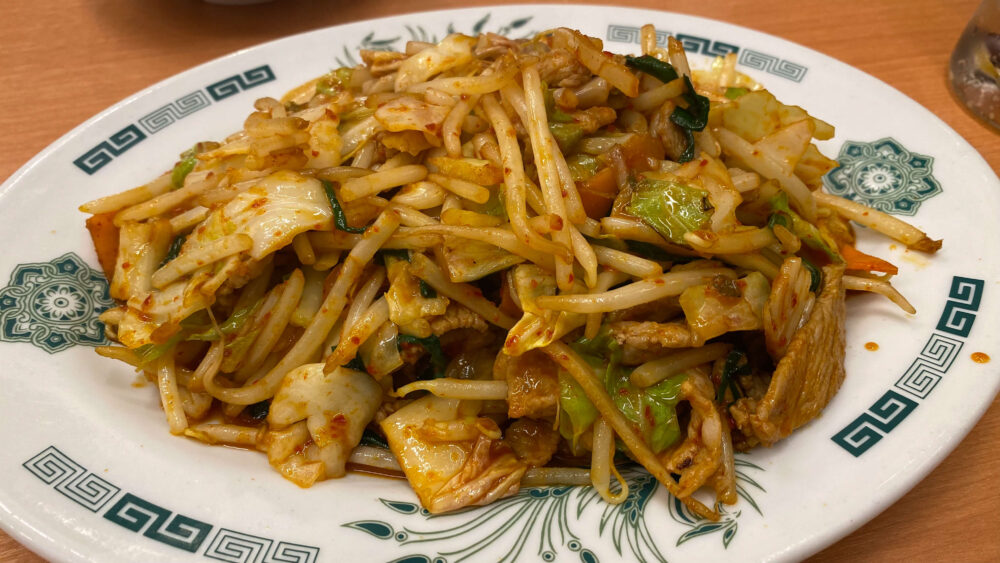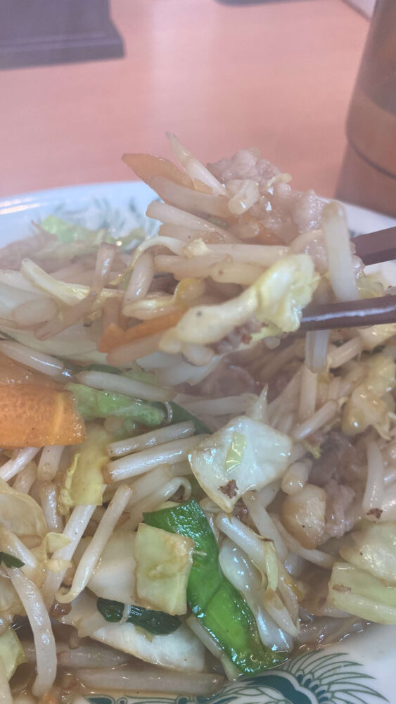 ▲野菜炒めはザクシャキ食感で美味。お酢をかけて食べるのが個人的に大ヒット。