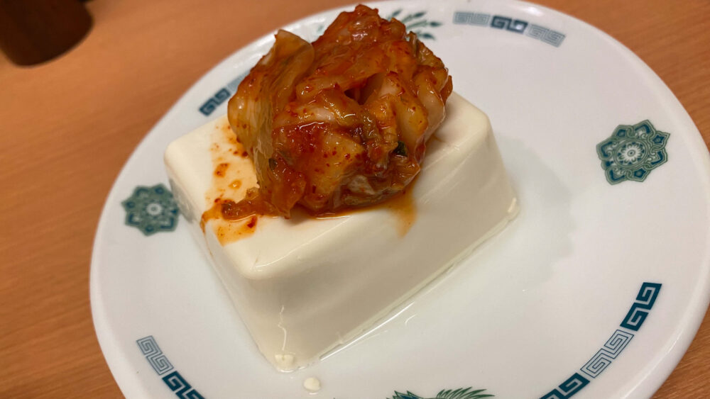 ▲キムチ奴(税込300円)。名前の通り、冷奴にキムチが乗ったやつ。