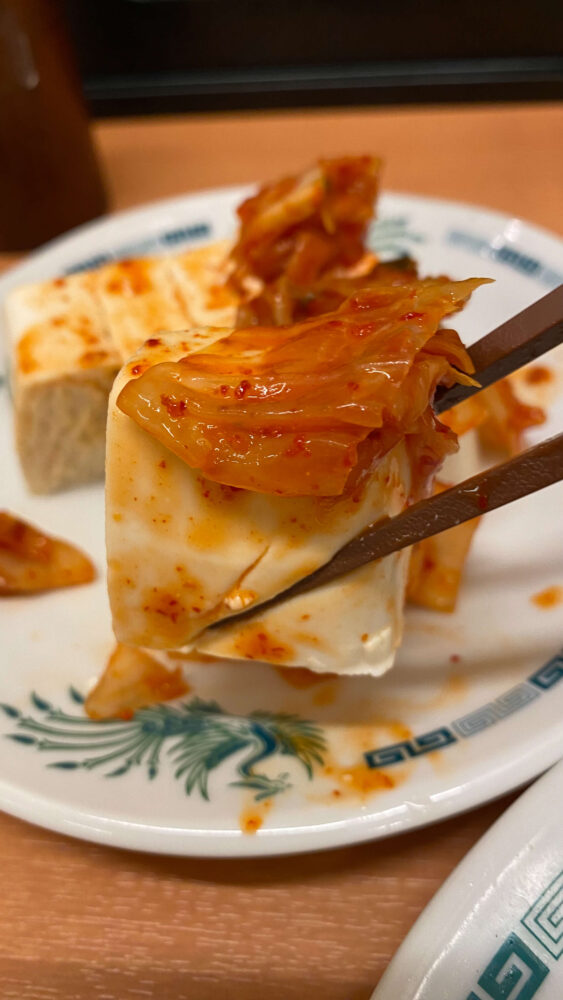 ▲キムチも冷奴のどちらも単独でつまみになるので、セットになっても当然美味しい。