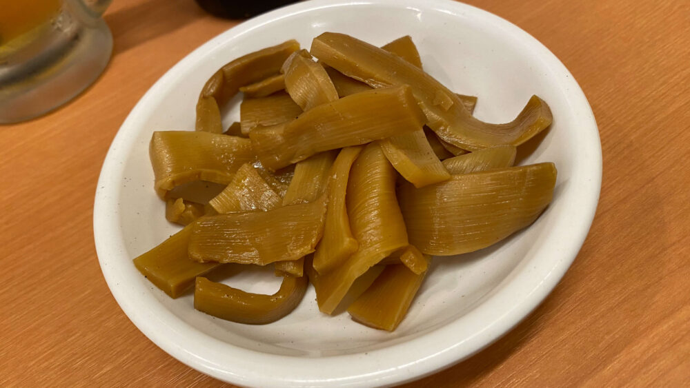 ▲味はラーメンのトッピングでよくある感じ。味はしっかりめで食感も良く、お酒のアテとしてバッチリ。