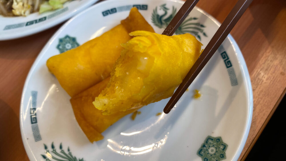 ▲春巻き風で中がチーズ。これがめちゃくちゃ美味しかった!日高屋のおつまみでトップクラスに好きかも。
