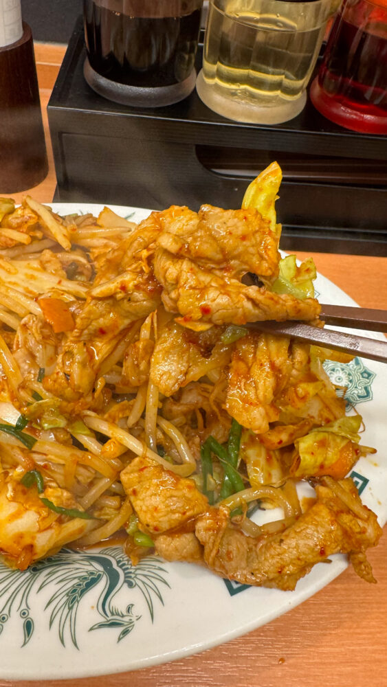 ▲ほどよくピリ辛で美味しい。豚肉も柔らかいです。