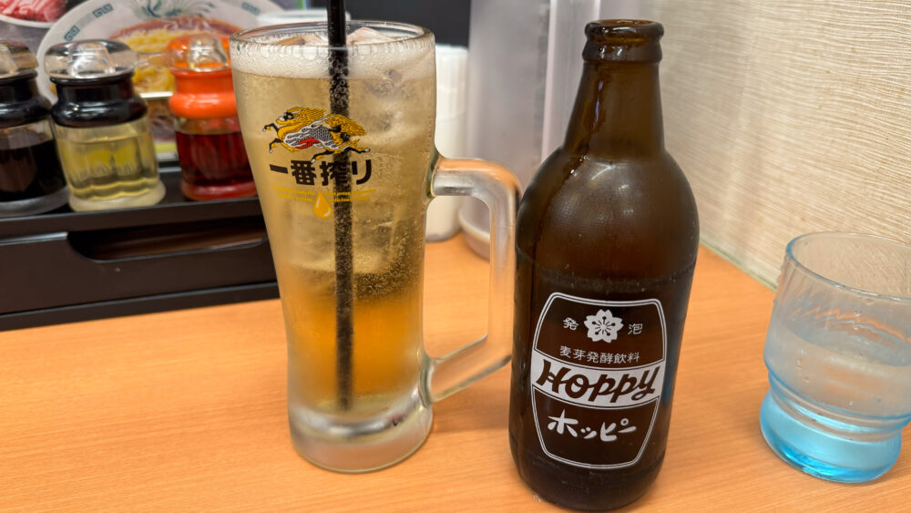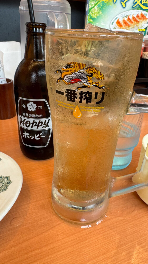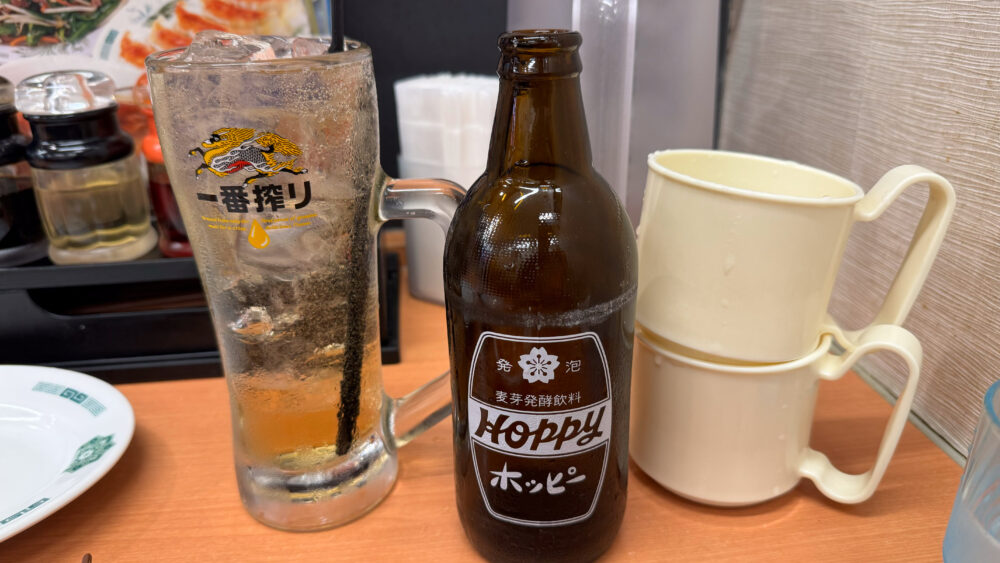 ▲ホッピーセットからの提供。日高屋はけっこう焼酎多めなので3杯は楽しめます。