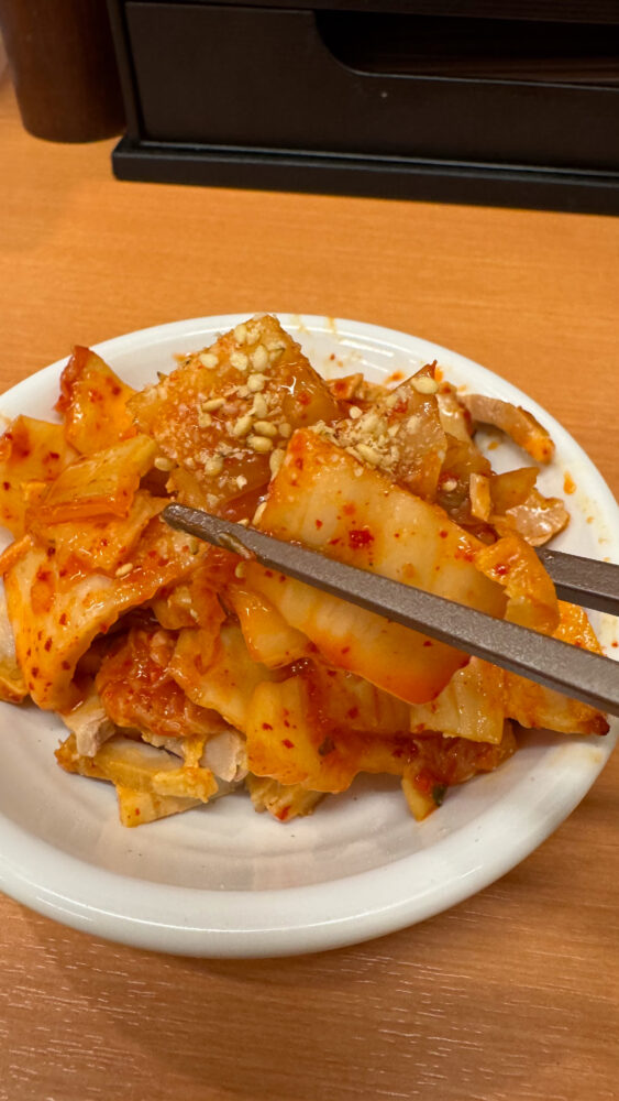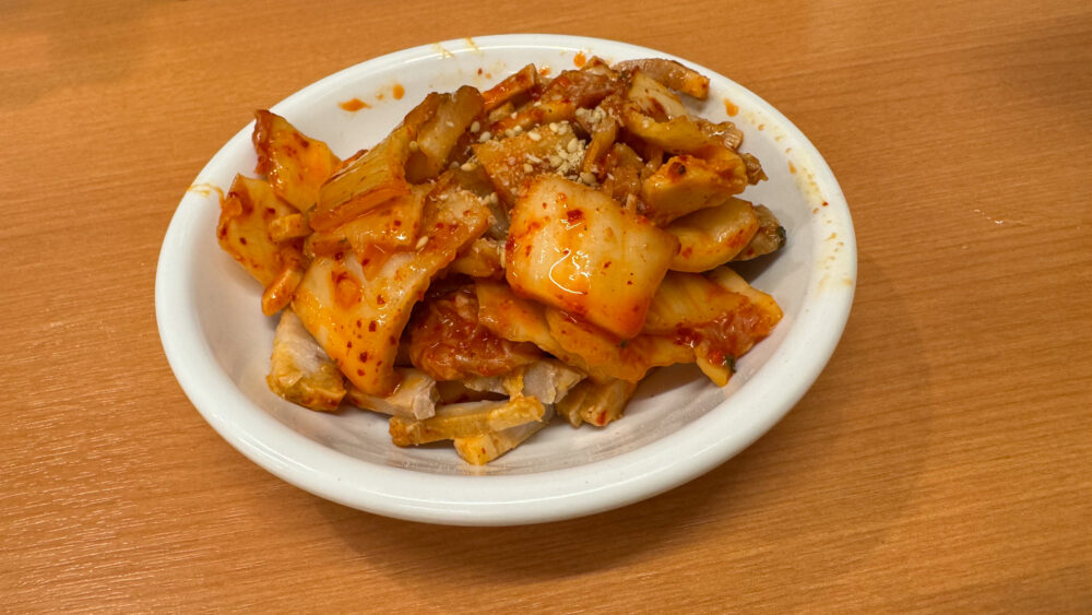 ▲あつまみはキムチャーシューから。チビチビ食べて飲むのに最適なスタート。