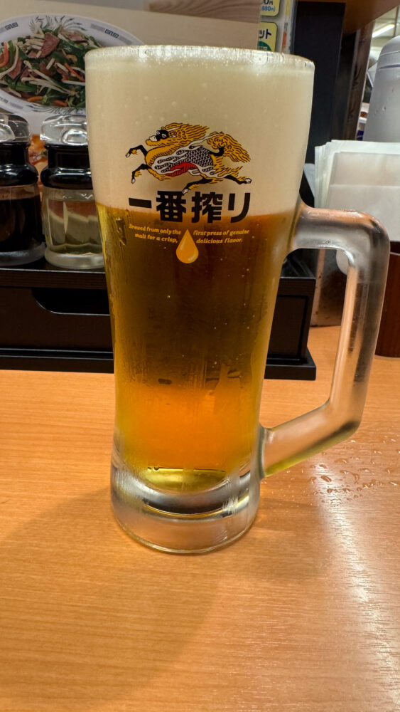 ▲生ビールからの提供。久しぶりの生ビールはやはり旨い。