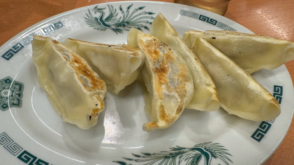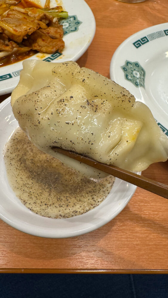 ▲餃子も到着。この日は王道の醤油+ラー油+お酢の気分。