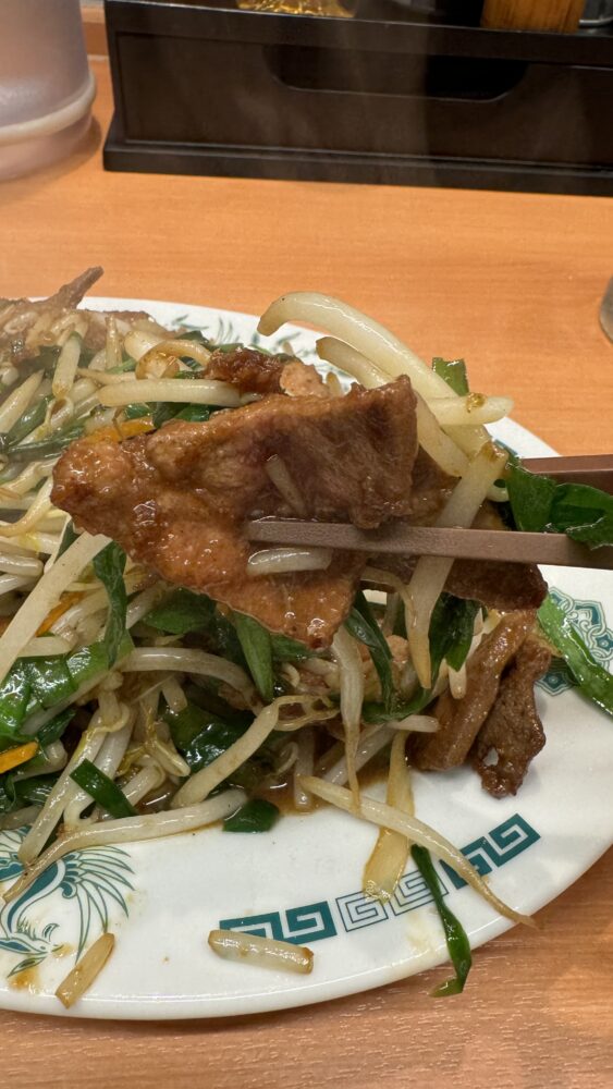 ▲ニラレバ炒めからの提供。具沢山でレバーもたっぷりなのが嬉しい。