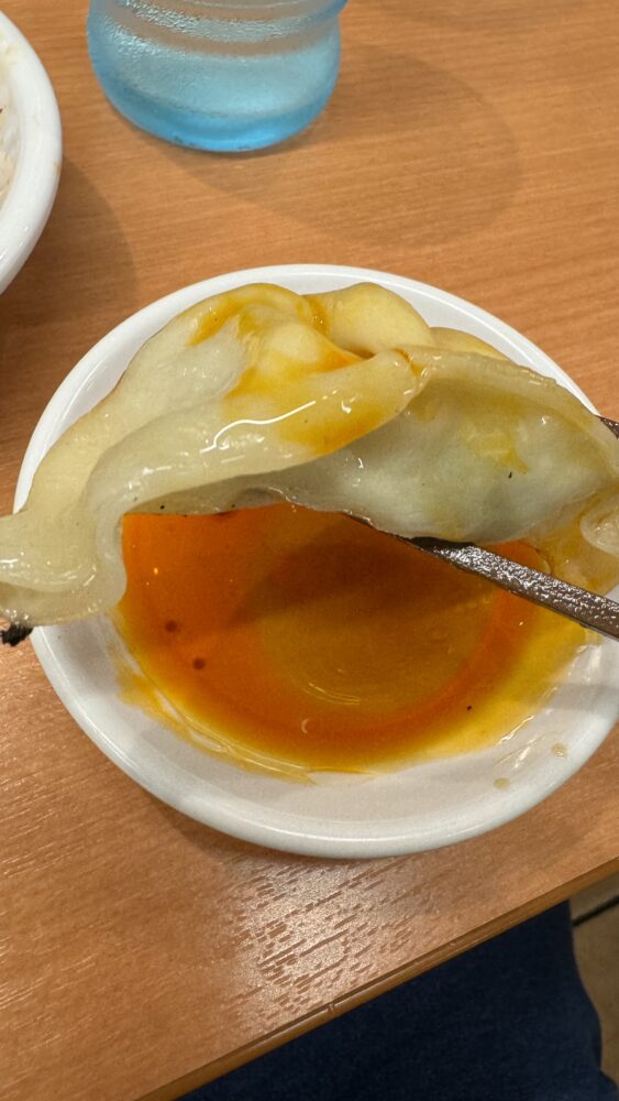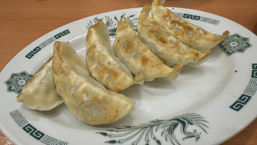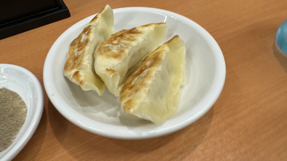 ▲続いて、餃子。3個セットはリーズナブルで助かりますね。