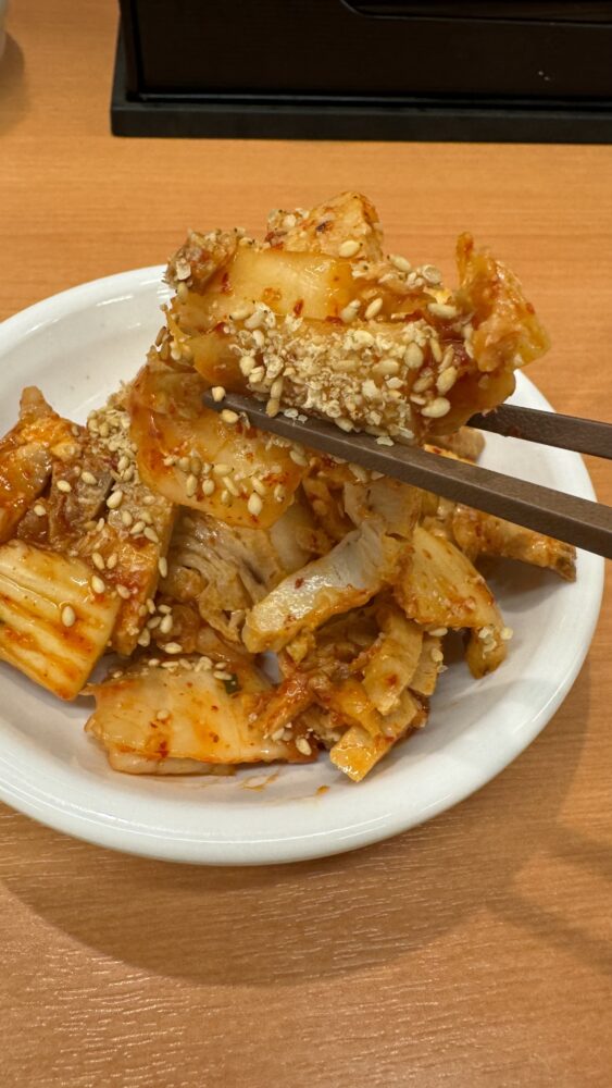 ▲キムチの酸味と辛さにチャーシューの食べ応えが加わって良いアテですね。