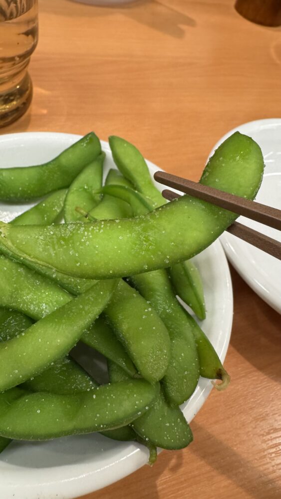▲まずは枝豆が着皿。塩もちょうど良い感じに振られています。