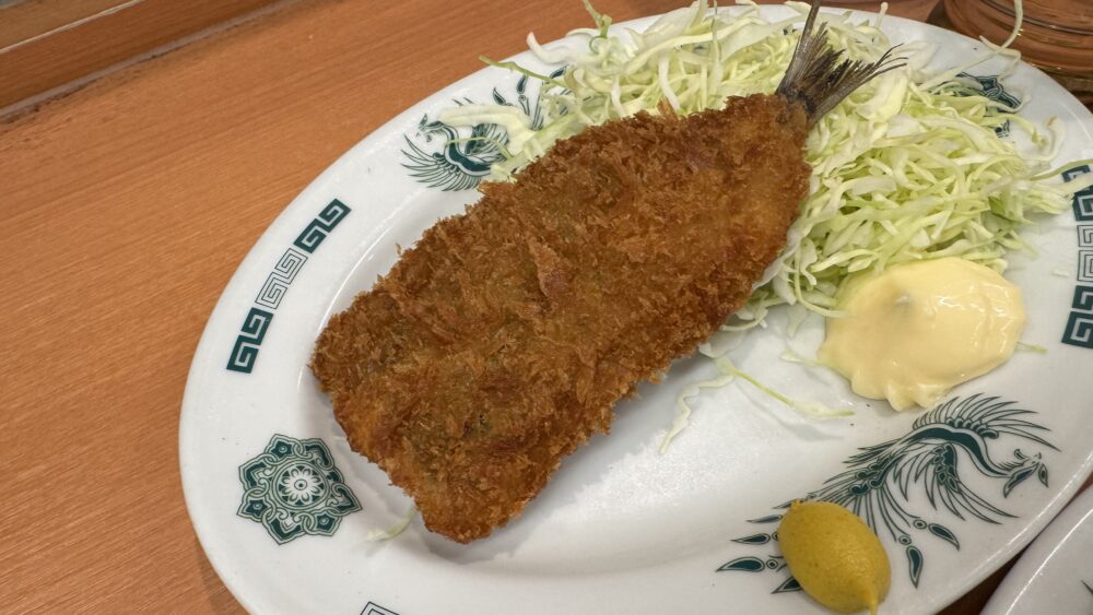 ▲続いてイワシフライ。辛子やマヨもあって嬉しい。