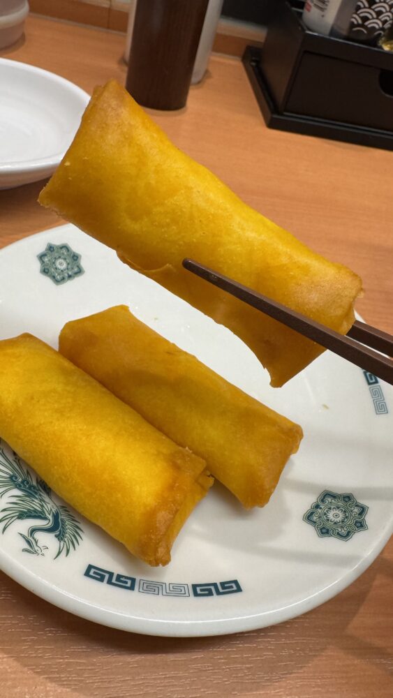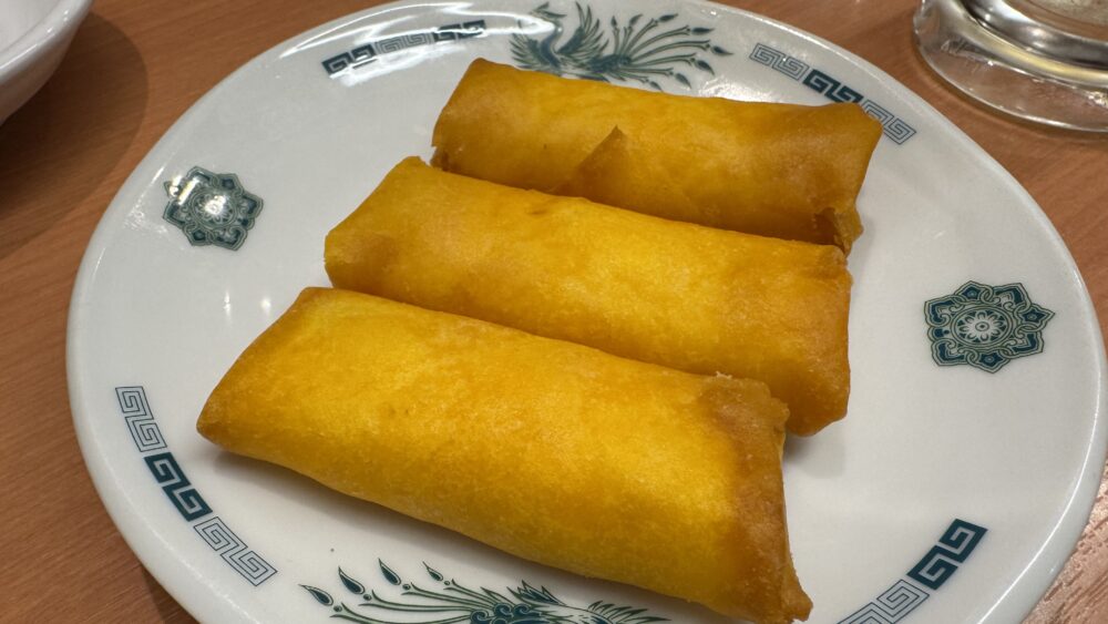 ▲続いてチーズ巻きが着皿。春巻きの中がほんのり黄色く感じます。