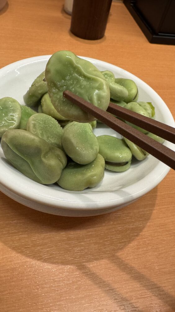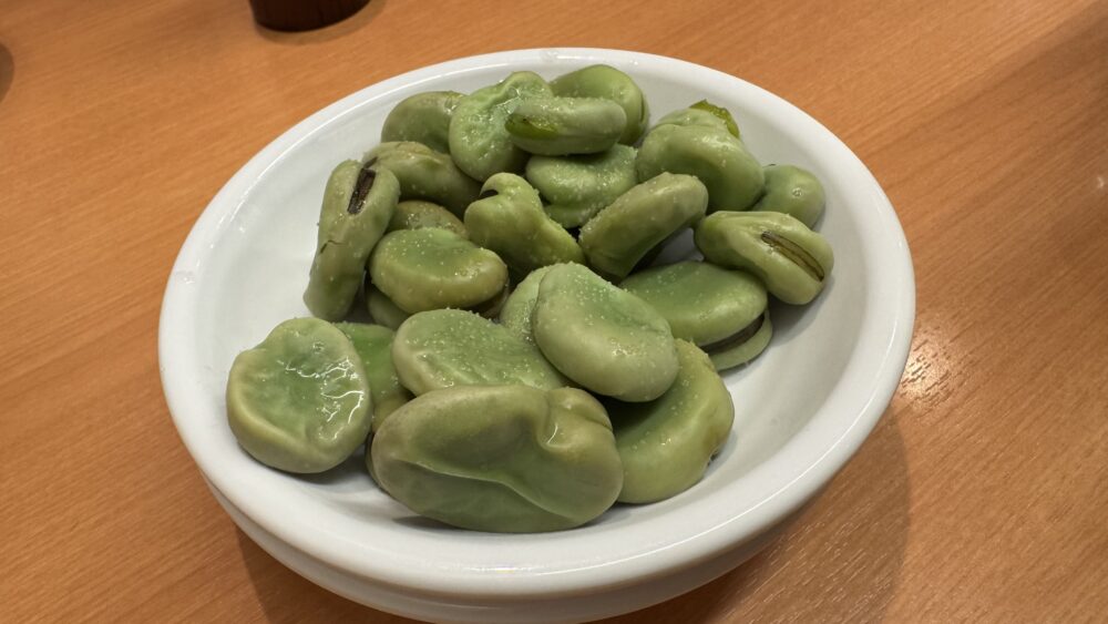 ▲まずはそら豆からの提供。大粒のそら豆が盛り沢山で嬉しい。