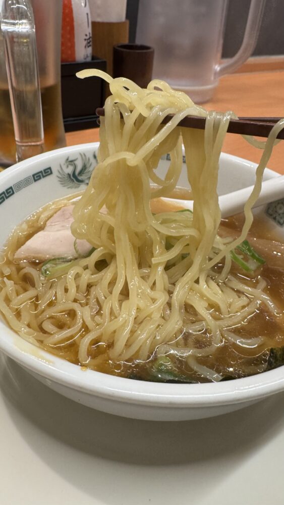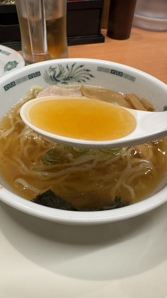 ▲アルコールが入った身体に醤油スープが染み渡ります。ホッとする美味しさ。